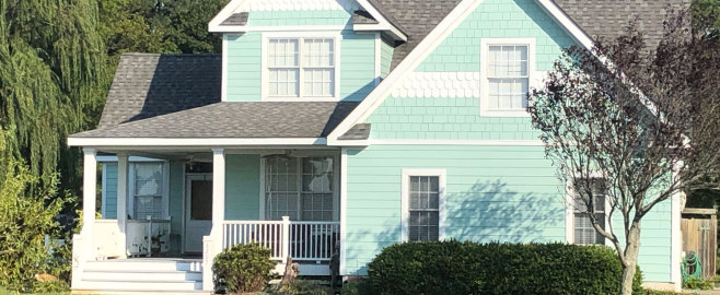 Generally, house designs are to resemble those of a tidal rural community reminiscent of architecture from 1900 to 1920. This would exclude ranch-style houses or other styles which exhibit a long, low close to the ground profile. Porches are to be a significant architectural feature; and we like, and generally require, porch railings. Minimum home size is 1400 square feet and two story maximum height. Homes can include the equivalent of a three-car garage, either attached or detached. We prefer attached buildings to increase open space, and we prefer garages not to face the street unless the lot width does not permit. High quality vinyl siding is permitted for exterior finishing, but Hardy board is the written preference.